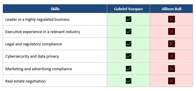 The First Foundation Board is committed to transparency, diversity, and independence. As demonstrated by the addition of Mr. Vazquez, we are committed to Board refreshment as well. Our willingness to improve and oversee enhancements are clear indications that we are invested in the long-term success of First Foundation and committed to serving the best interests of our stockholders. We are confident that we have the right mix of people with the right skills and experiences working to enable our success as a best-in-class regional bank in today’s complex industry environment.